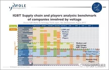 IXYS acquisition by Littelfuse turns again the IGBT landscape upside down. This impulse initiates a new process towards the market consolidation, a trend identified by Yole Développement’s analysts in their latest report, IGBT Market & Technology Trends 2017. Therefore, the leading position of Infineon Technologies forces IGBT players to reinforce their technical expertise and their market position and consider collaborations and/or acquisitions.Expected to reach more than US$ 5 billion in 2022 (1) , the IGBT market is showing a well-established supply chain with strong partnerships and companies positioned at each level.